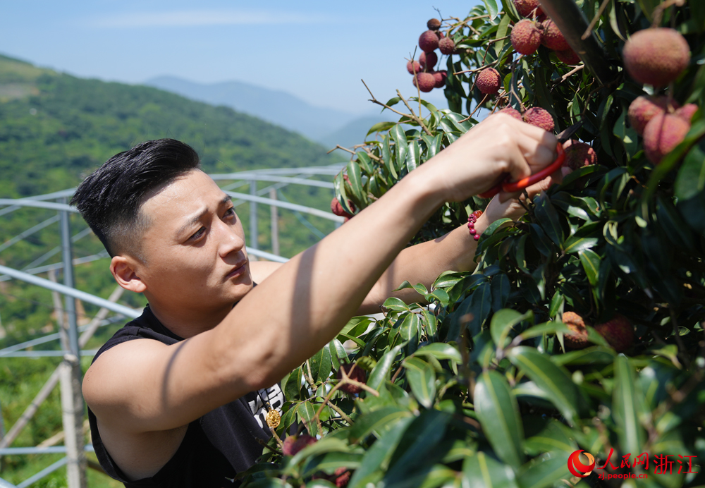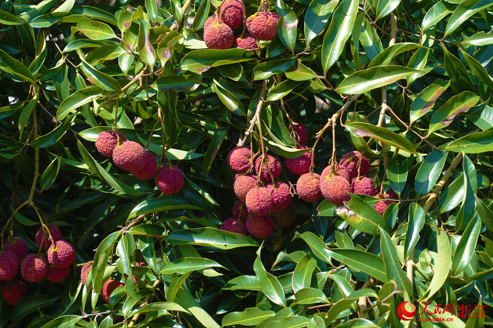 人民網溫州8月10日電 (劉欣蔚、陳陸洵)近日,溫州市蒼南縣馬站鎮的無核荔枝陸續進入采摘期,有效填補了廣東、福建等主產區荔枝下市后的市場空窗期。一串串紅彤彤、飽滿圓潤的荔枝掛滿枝頭。