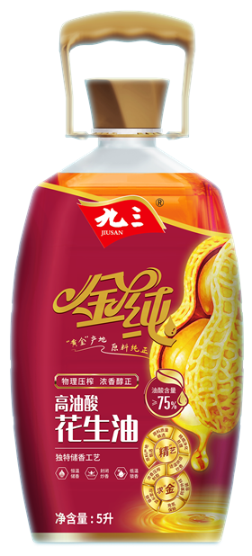 九三金純系列高油酸花生油:金純高油酸花生油油酸含量≥75%,是高品質(zhì)的健康好油。原料來源于砂質(zhì)土壤高油酸花生培育區(qū),嚴(yán)選當(dāng)季新鮮高油酸飽滿大花生,通過原料質(zhì)量嚴(yán)測,精細(xì)凈化處理。制取過程適溫烘焙炒香,把控關(guān)鍵制香點(diǎn);脫殼螺旋物理壓榨,保持特有香味與營養(yǎng);控溫冷濾技術(shù),鎖住花生濃香,油品濃厚醇正。采用充氮工藝、抗紫外線包裝,螺旋封蓋鎖鮮,保持油品新鮮品質(zhì)。