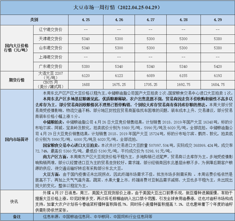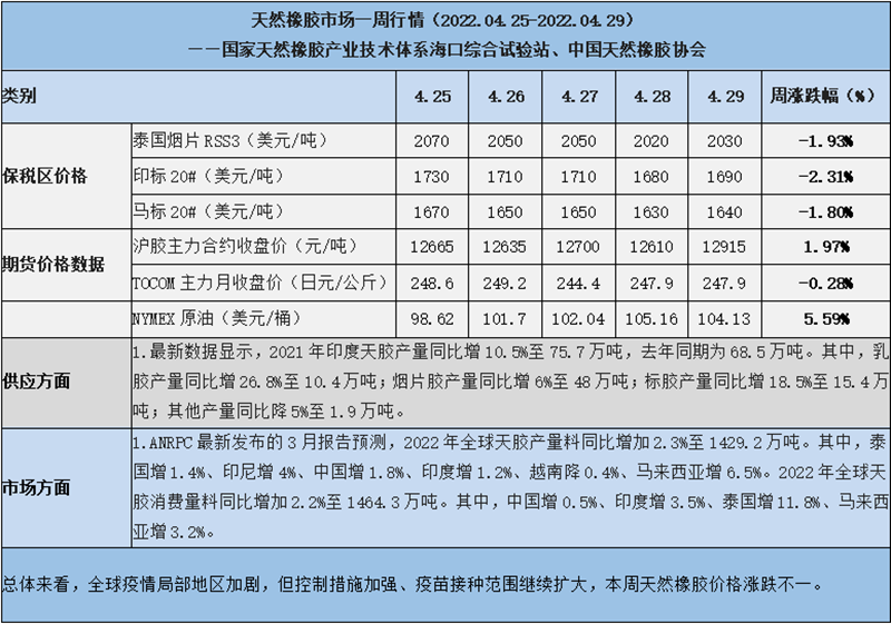 天然橡膠、大豆、玉米市場一周行情(2022.04.25-04.29)