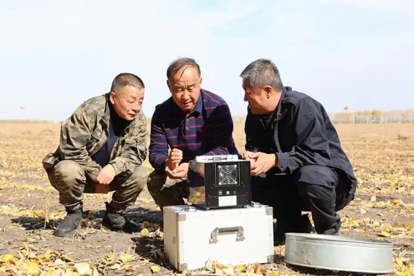 長水河農場技術人員測量墾地托管地塊大豆水分和蛋白含量。劉曉巖 攝