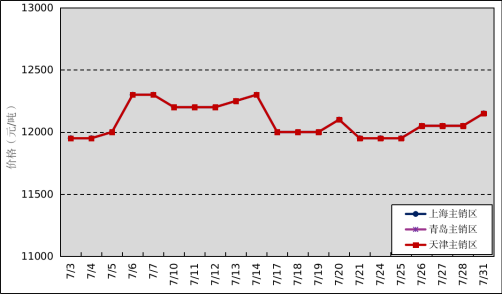 國內主銷區7月,國產全乳標準膠上海市場平均價格12090/噸,環比上漲260/噸,最高價為12300/噸,最低價為11950/噸;青島市場平均價格12090/噸,環比上漲260/噸,最高價為12300/噸,最低價為11950/噸;天津市場平均價格12090/噸,環比上漲260/噸,最高價為12300/噸,最低價為11950/噸。