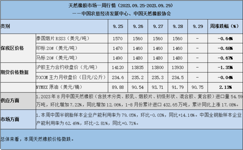天然橡膠、大豆、玉米市場一周行情(2023.09.25-09.29)