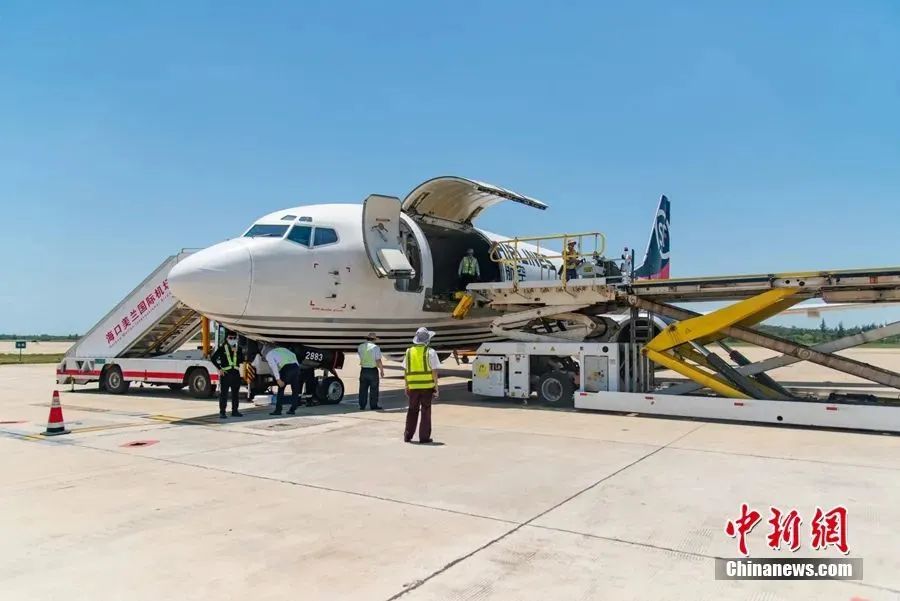 圖為??谥辽钲谕诞a地直發的荔枝貨機專線。??诿捞m國際機場供圖