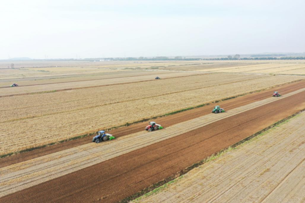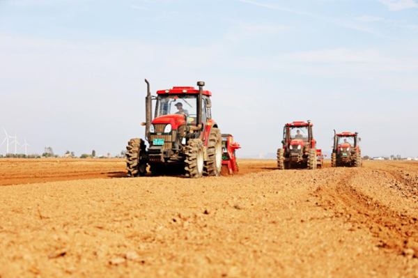 日前,在位于安徽省滁州市明光市境內的安徽農墾潘村湖農場第二農業生產管理區,5臺旋耕施肥播種復式一體機正在開展小麥播種作業。“今年播期整體較往年有所推遲,采用輕簡化新型機械作業,可縮短作業周期,促進及早出苗。”潘村湖農場總經理助理程國華說。