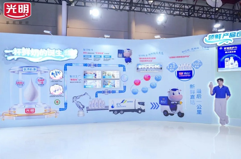大會期間,光明乳業展臺持續亮相,以“科技+體驗”為雙引擎,為現場來賓帶來了一場集科技、品質與互動于一體的沉浸式體驗,傳遞“百年光明”的創新基因與品質堅守。