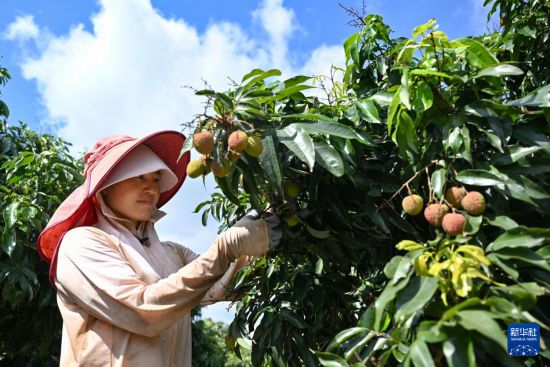 5月22日,農民在海口市瓊山區三門坡鎮采摘荔枝。