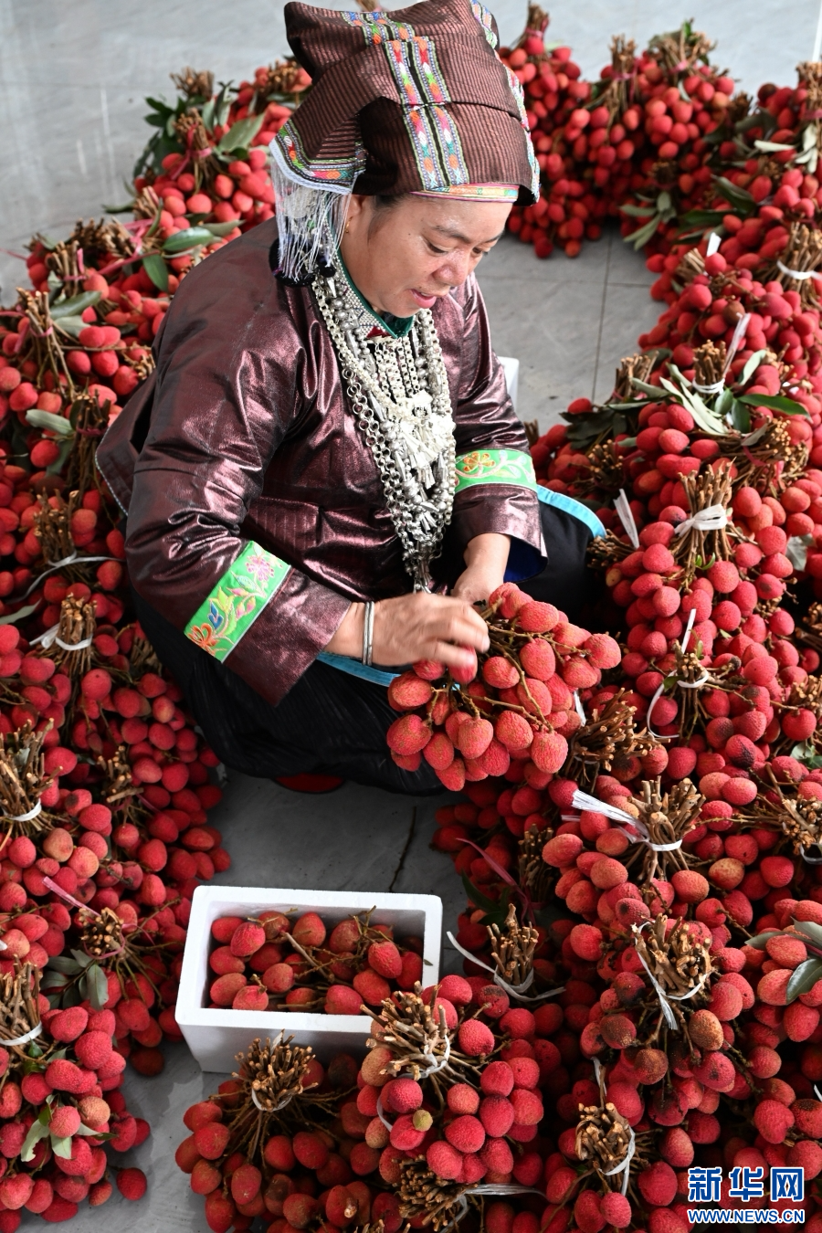 村民打包荔枝(6月9日攝)。新華網(wǎng)發(fā)(熊平祥攝)