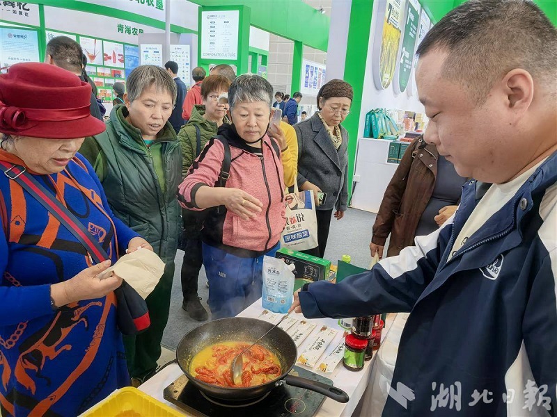 當天,湖北展團還帶來了NFC果汁、應城黃灘醬油、隨州香菇、“楚小田”沙琪瑪、茶油紫蘇醬和潛江蝦稻等特色農產品,均受到采購商和市民的追捧。