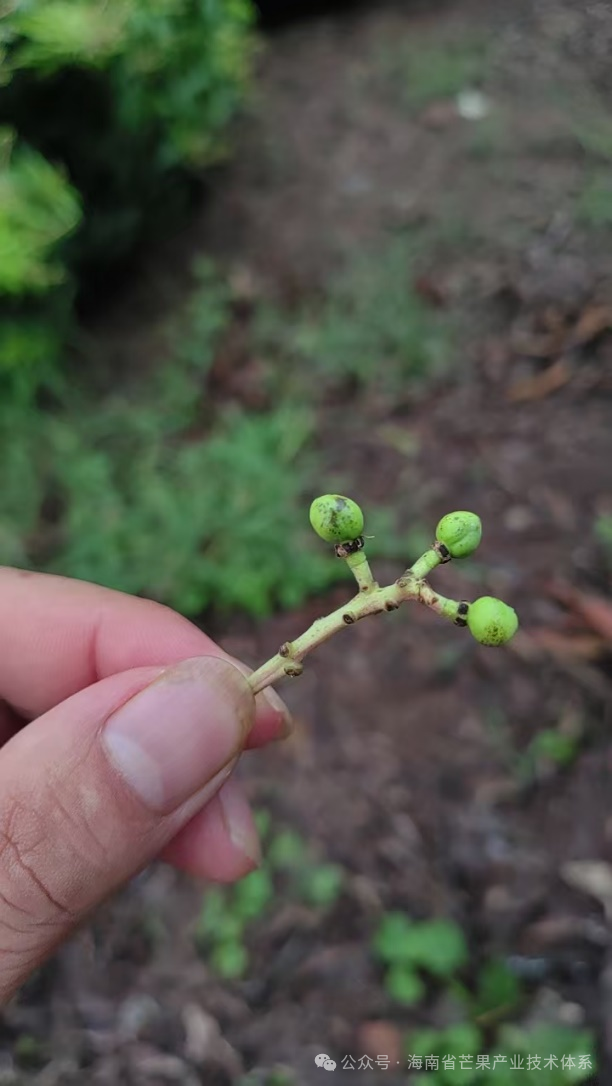 流行臺風雨后,植株受傷,樹勢降低,且連續雨水天氣,空氣潮濕,容易誘發芒果細菌性角斑病、炭疽病、流膠病等病害流行發生。當前三亞、樂東等部分果園出于揚花期和小果期,尤其要注重預防芒果細菌性角斑病細菌病害,和芒果炭疽病、枝枯病、流膠病等真菌性病害的流行。受損樹應該在晴天上午10點以前或者下午4點以后,噴1%石灰等量式波爾多液或者代森錳鋅等殺菌劑,預防病害的發生。還可選用戊唑醇、肟菌·戊唑醇、唑醚·氟環唑、氟菌·戊唑醇、苯甲·丙環唑、苯醚甲環唑、代森錳鋅、吡唑醚菌酯、三唑酮等藥劑預防真菌性病害;可選用波爾多液、石硫合劑、春雷·王銅、噻菌銅、春雷霉素、氫氧化銅、中生菌素等藥劑預防細菌性黑斑病。