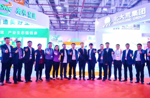 農業(yè)農村部黨組成員、副部長鄧小剛(前排中),農業(yè)農村部農墾局一級巡視員程景民(前排左),廣東省農墾集團公司(農墾總局)黨委委員、副總經理(副局長)莫仕文(前排右)到廣東農墾展位調研指導