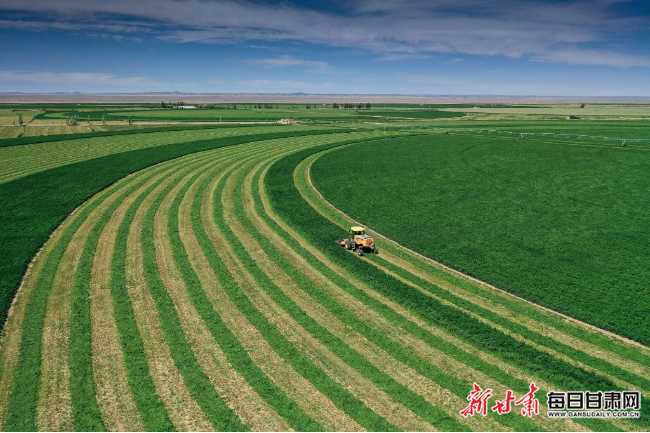 優(yōu)質(zhì)牧草,是保障牛奶品質(zhì)的第一關(guān)口。甘肅農(nóng)墾在河西走廊建成高產(chǎn)優(yōu)質(zhì)牧草示范基地30萬畝。