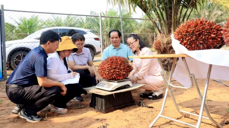 根據(jù)中國(guó)熱帶農(nóng)業(yè)科學(xué)院椰子研究所等“熱油2號(hào)”油棕新品種選育單位的申請(qǐng),2024年4月29日,全國(guó)熱帶作物品種審定委員會(huì)組織鑒評(píng)專(zhuān)家組,在海南文昌對(duì)申報(bào)的“熱油2號(hào)”油棕新品種進(jìn)行現(xiàn)場(chǎng)鑒評(píng)。