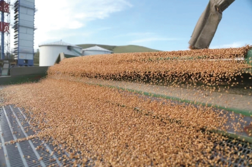 免渡河農(nóng)牧場收獲的小麥正在進(jìn)行篩選,等待烘干后入倉。 王軒 攝