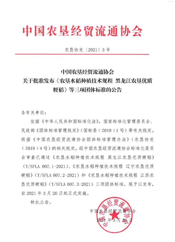 《農墾水稻種植技術規程 黑龍江農墾優質 粳稻》等三項團體標準發布實施