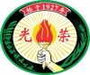 標志中小麥和黃豆表示光榮醬油的原料,純糧釀造的光榮醬油不含化學增鮮劑?;鸢驯硎竞诎狄呀涍^去,象征光明到來;火是紅色的,象征著光榮醬油紅紅火火。