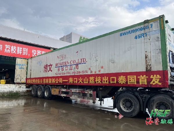 5月13日下午,??诨鹕嚼笾Τ隹谔﹪装l(fā)儀式在位于??谑协偵絽^(qū)三門坡鎮(zhèn)的海墾紅明湘海農(nóng)產(chǎn)品交易中心舉行,工人們井然有序地將“妃子笑”荔枝分揀打包裝車。紅明農(nóng)場公司首批裝載2.7萬斤、貨值116萬余元(泰國落地價(jià))的鮮荔枝正式發(fā)車前往泰國,這也是海墾荔枝首次進(jìn)入東南亞市場。